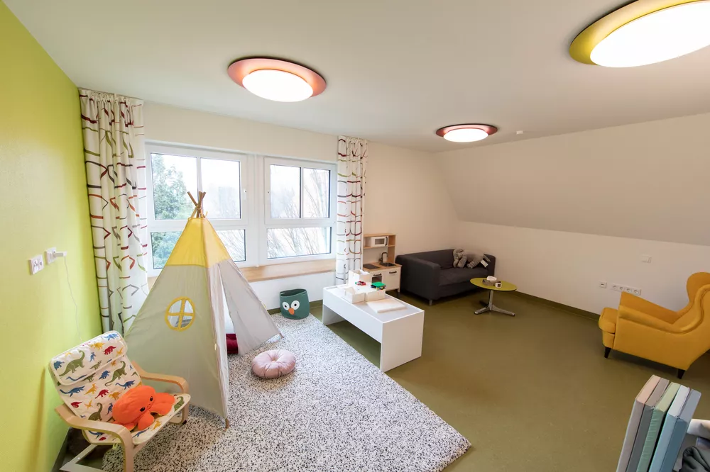 Ende 2022 haben wir uns räumlich um den Standort Alte Feuerwehrschule erweitert. Ca. 5 Fahrminuten vom Gesundheitscampus entfernt liegt im Außenbereich das schöne Gebäude mit großzügigen Außenanlagen. In diesem ruhigen Umfeld bieten wir die Interdisziplinäre Frühförderung und die Autismus-Therapie an.